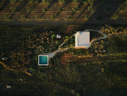 Along the dry stone walls of a narrow country lane in Southern Salento, you reach Torre67, Mateus’s first project in Puglia. The tower, with a square plan and structured on two levels, rises in the heart of the rural area of Alezio (Lecce). Immersed in a landscape of crops, vineyards and wild flowers, two olive trees marked by Xylella welcome the entrance, like columns that evoke the memory of a now lost landscape. Built between the 12th and 14th centuries, initially intended for sighting purposes, the tower has undergone several transformations over time, maintaining traces of religious symbolism. Today, thanks to the rigorous restoration work of the Portuguese studio, the tower returns to its original form.
